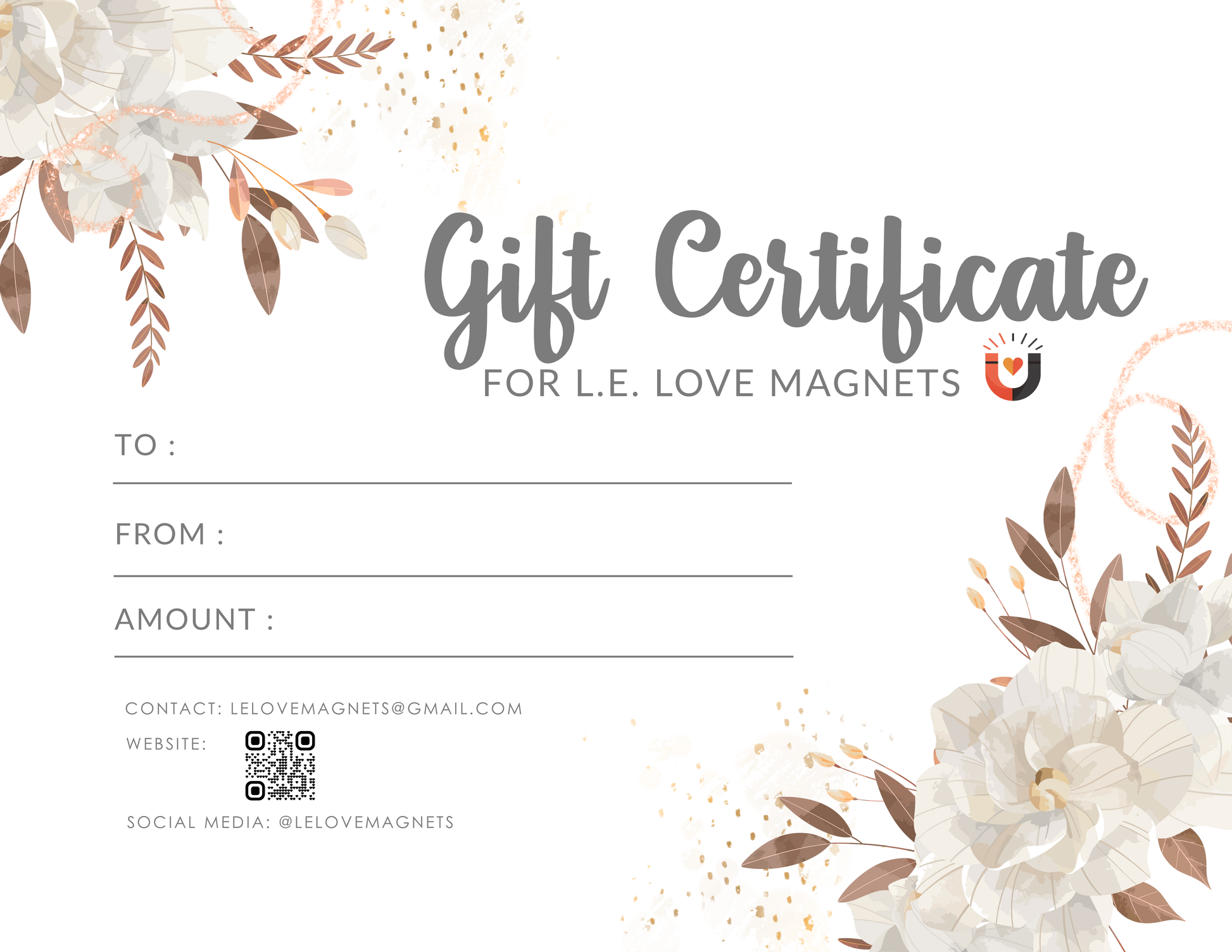 Not sure which photos to choose? Let them decide! L.E. Love Magnets gift cards are the perfect way to share something meaningful. Perfect for wedding, engagement, baby shower, holiday, and just because gifts.